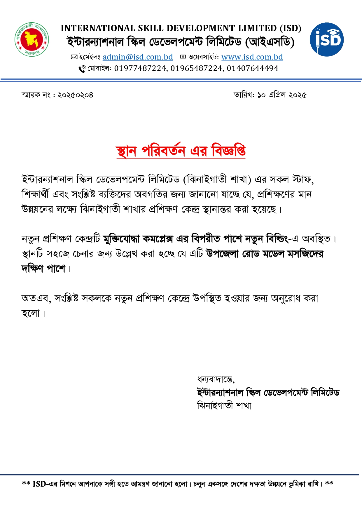 (ঝিনাইগাতী শাখা) এর সকল স্টাফ, শিক্ষার্থী এবং সংশ্লিষ্ট ব্যক্তিদের অবগতির জন্য জানানো